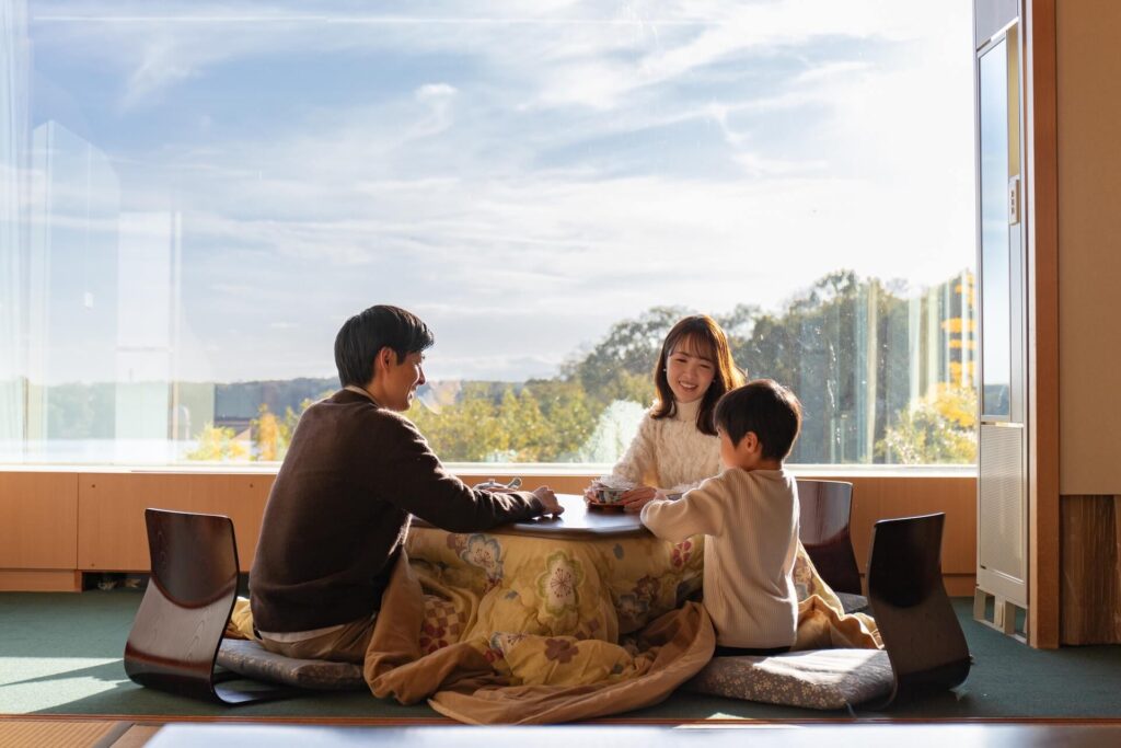 - 冬の風情を感じる2室限定「こたつ付き多摩湖ビュー和室」で、星空観察後に親子でくつろぎの時間をご提供
