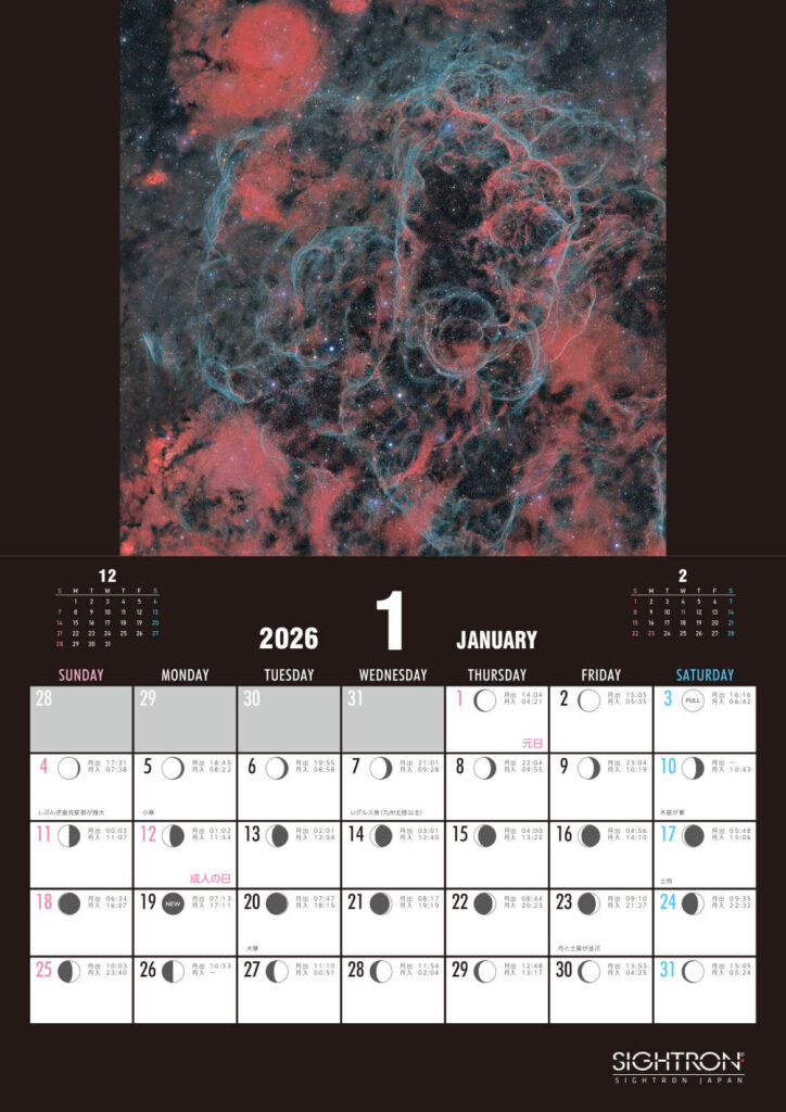 株式会社サイトロンジャパン(本社:東京都新宿区、代表取締役:渡邉晃)は、流星群の極大日をはじめとする天文現象や月の満ち欠けを掲載した実用的なカレンダー「サイトロンジャパン天体カレンダー2026」を、2025年11月28日(金)に発売します。