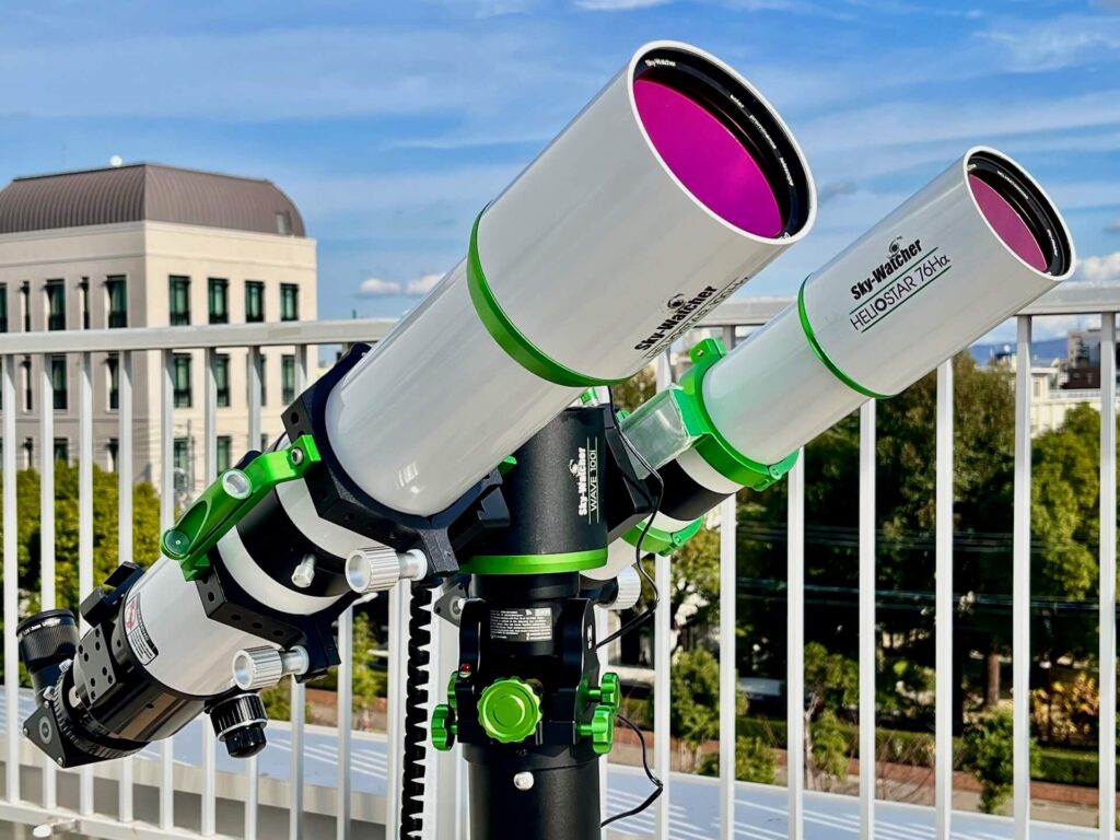 昼はHα太陽望遠鏡、夜は一般的な天体望遠鏡として利用できる「フェニックス」や、人気の「ヘリオスター 76Hα」、さらに新製品「ヘリオスター 100Hα」も登場します。迫力ある太陽の姿を3機種でじっくり観察いただけます。新製品に興味がある方やHα望遠鏡で太陽を見てみたい方など、どなたでもお気軽にご参加ください。