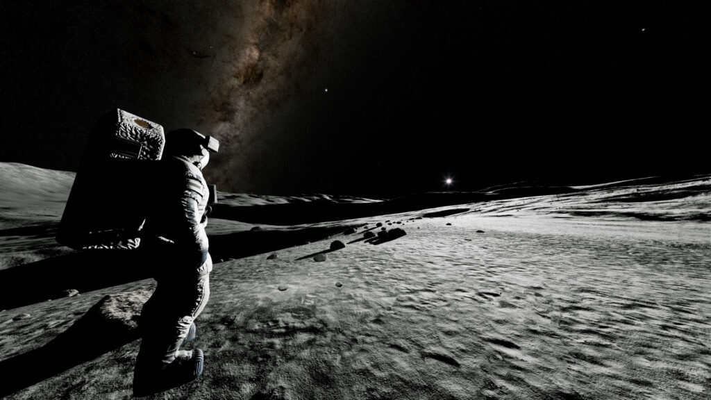 プレイヤーは歩行やローバー操作を通じて、まるで本物の月面を探索しているかのような体験ができます。