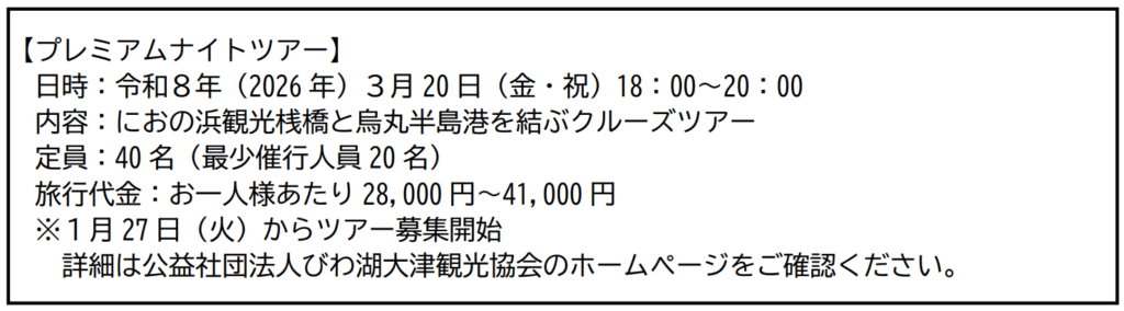 | 旅行企画・実施 | 公益社団法人びわ湖大津観光協会 |