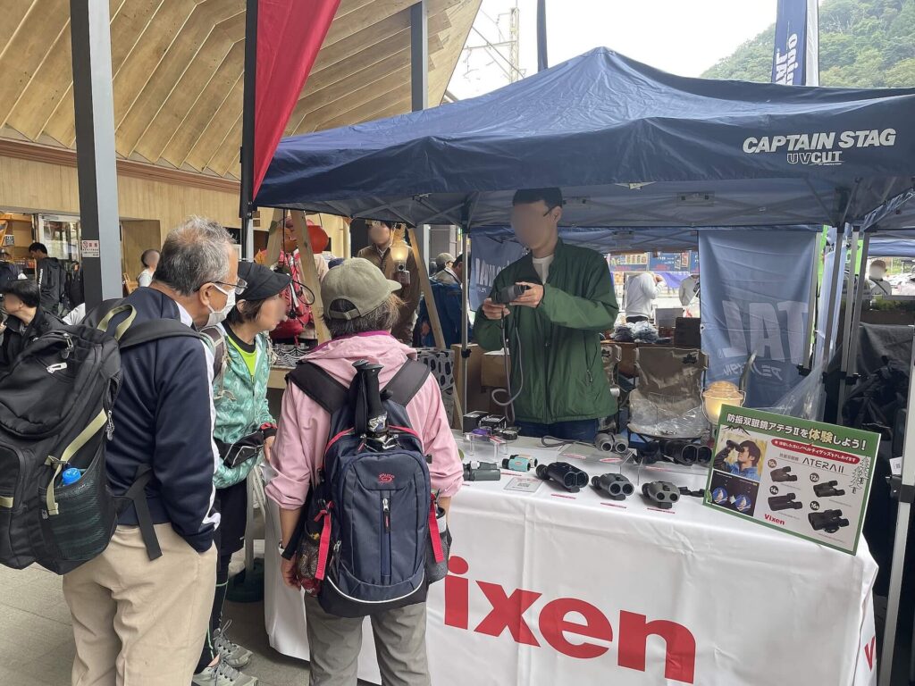 ビクセンブースでは、人気製品「防振双眼鏡」をはじめ、自然観察をより楽しむための双眼鏡などを販売します。また体験イベントとして「ビクセンと行くはじめての自然観察会」を実施します。